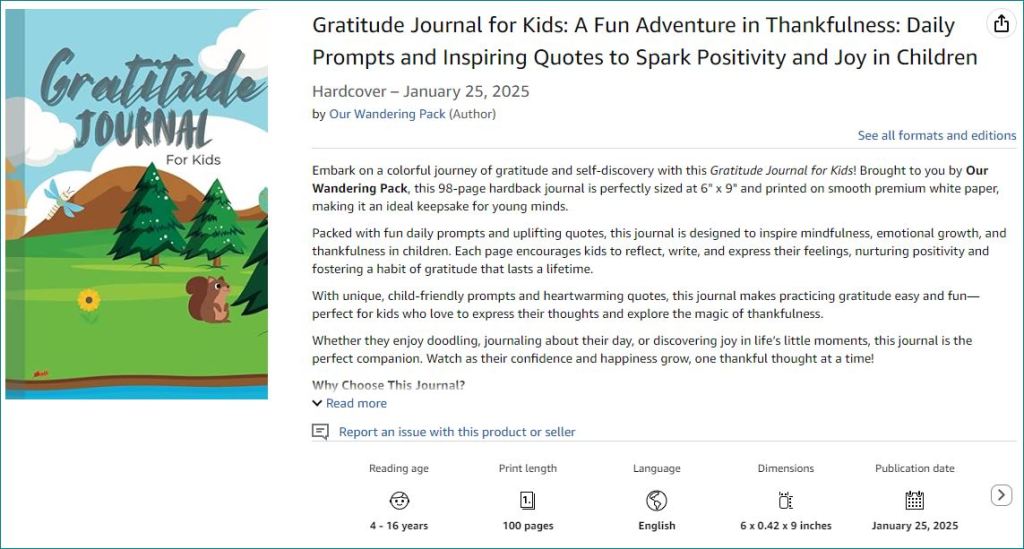 At Our Wandering Pack, we’re all about embracing creativity, adventure, and flexibility, and that mindset is reflected in the ways we’ve chosen to generate income. One of our key revenue streams is publishing through Kindle Direct Publishing (KDP). This platform allows us to share our love of nature and mindfulness with others through unique products like coloring books, gratitude journals for kids, and nature reflection journals for adults. Each creation reflects our passion for the outdoors and personal growth while providing value to our audience. With KDP’s print-on-demand model, we don’t have to worry about inventory or upfront costs, allowing us to focus on designing meaningful, high-quality books.